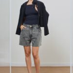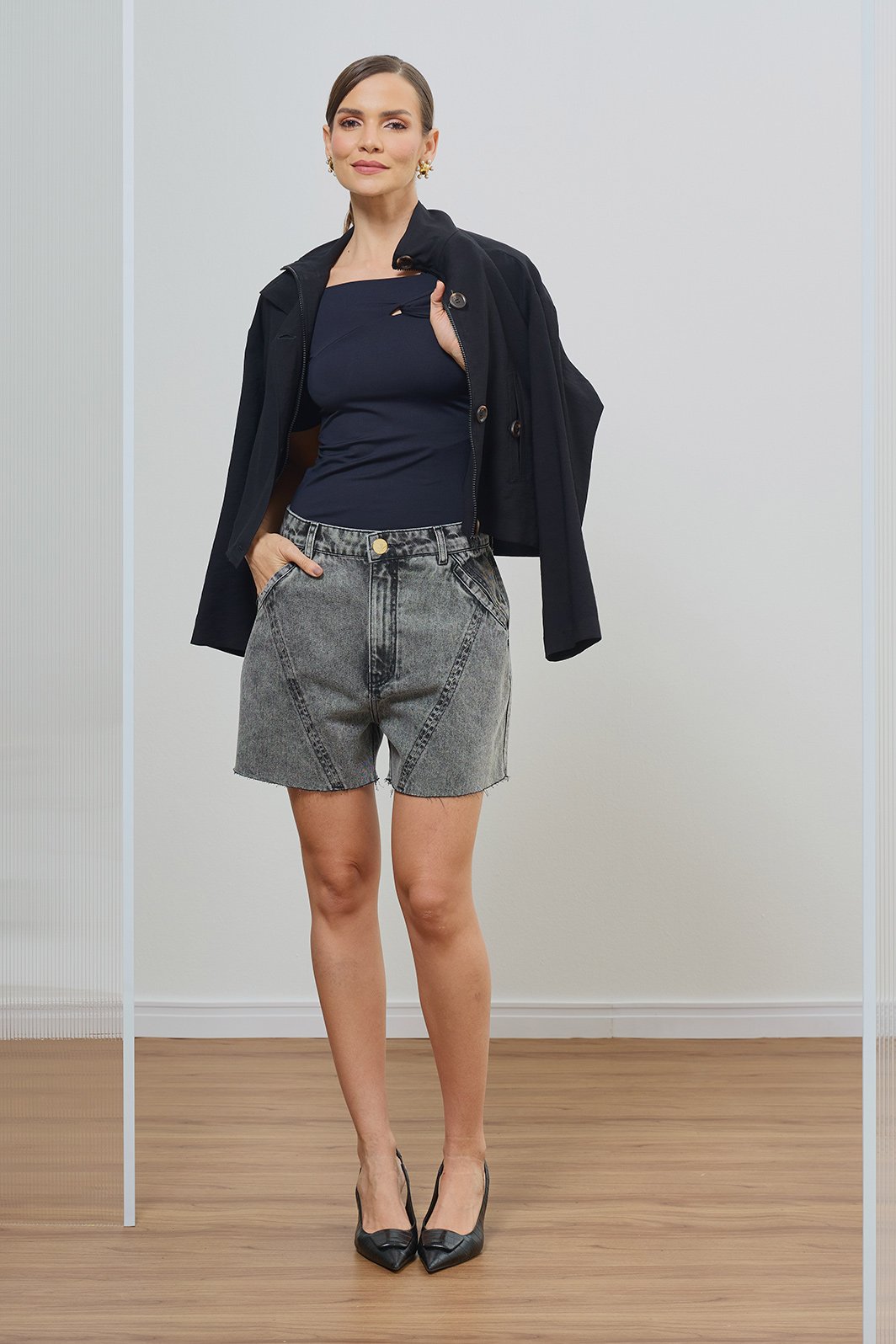 Combine com jeans de lavagem estonada ou cinza para um visual urbano e atual. Para uma produção mais refinada, aposte em calças de alfaiataria e acessórios metálicos que realcem o corte diferenciado do decote.