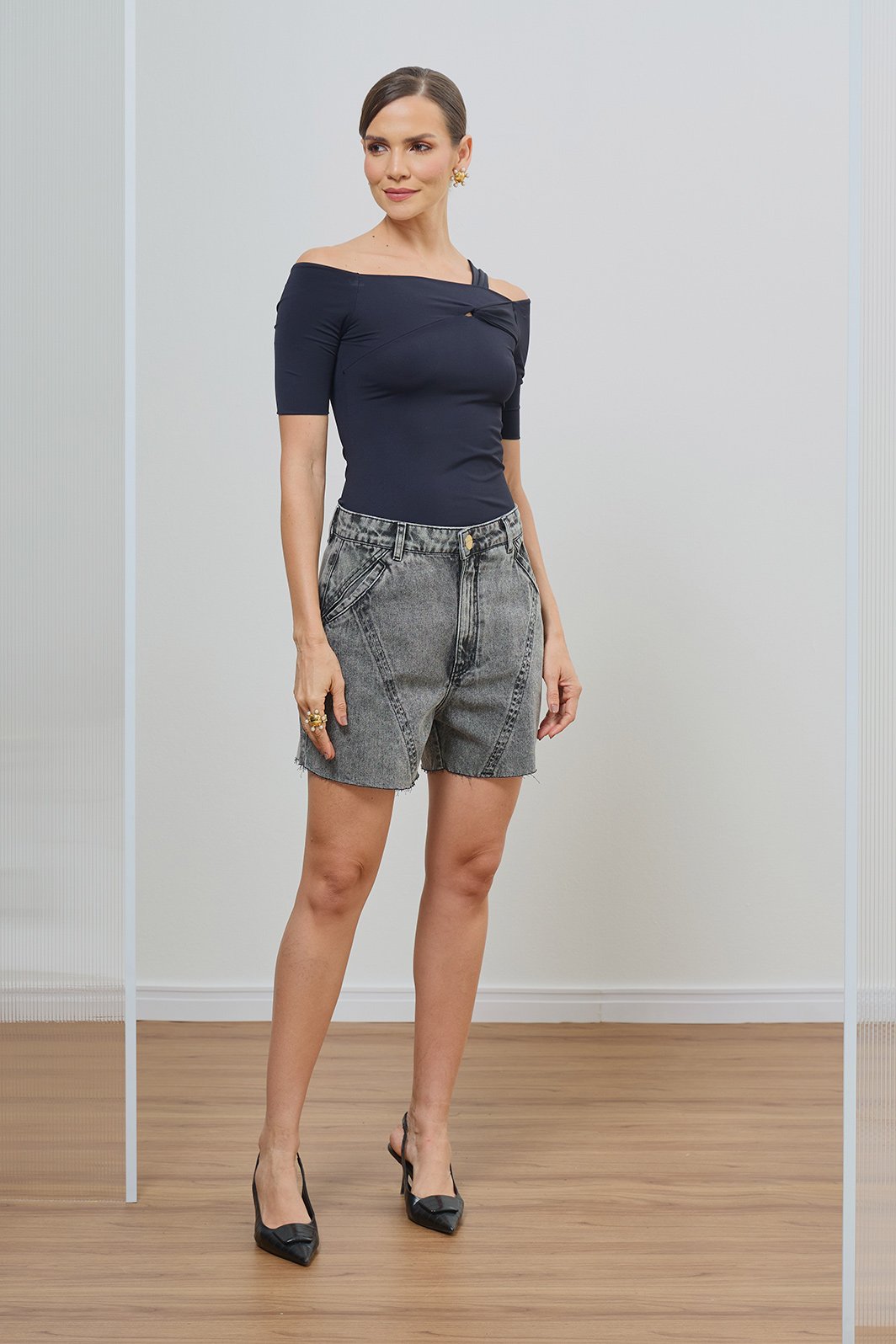 Detalhes: Decote assimétrico vazado que confere um ponto de design moderno à peça.