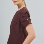 Uma peça que traduz a sofisticação TOLI através de detalhes minuciosos. Esta blusa em crepe combina o tom intenso da estação com o charme das mangas trabalhadas, elevando o design essencial a um novo patamar de elegância para o dia a dia.