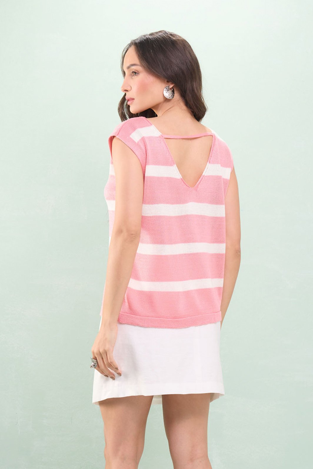 Blusa Decote V Listrada Tricot