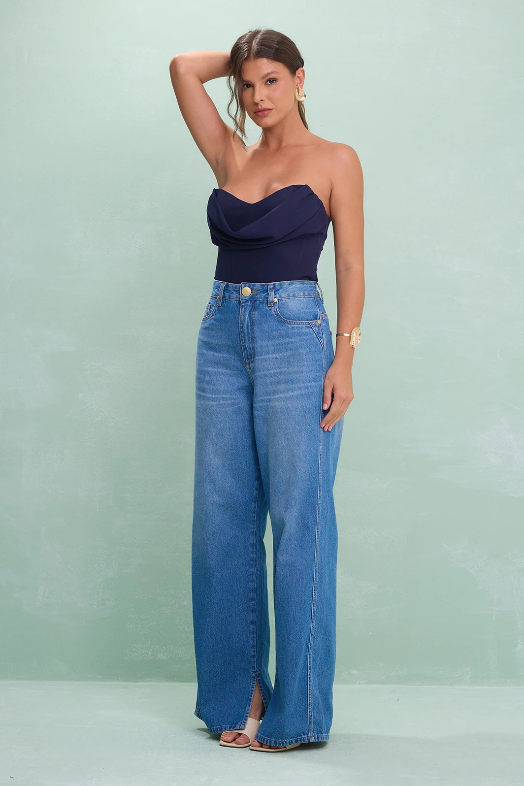 Blusa Sem Alça Com Drapeado No Decote Alfaiataria