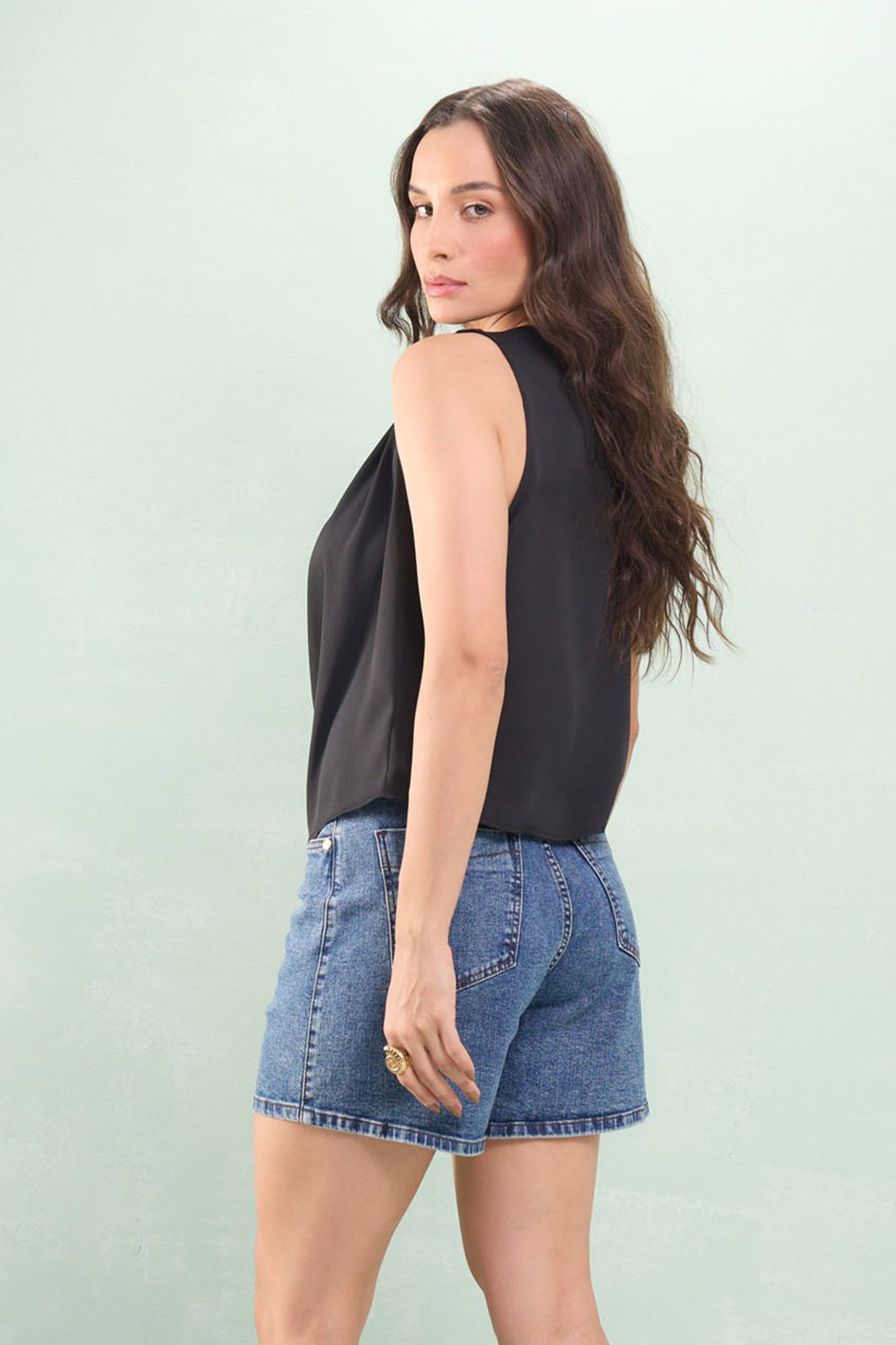 Blusa Sem Manga Degagê Com Fivela Crepe
