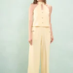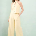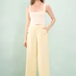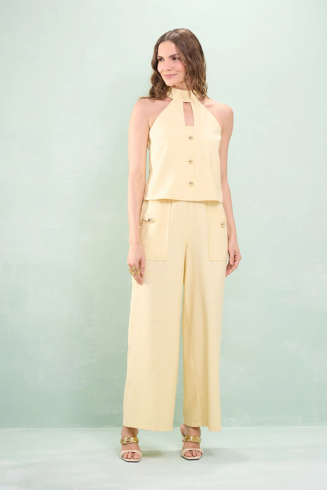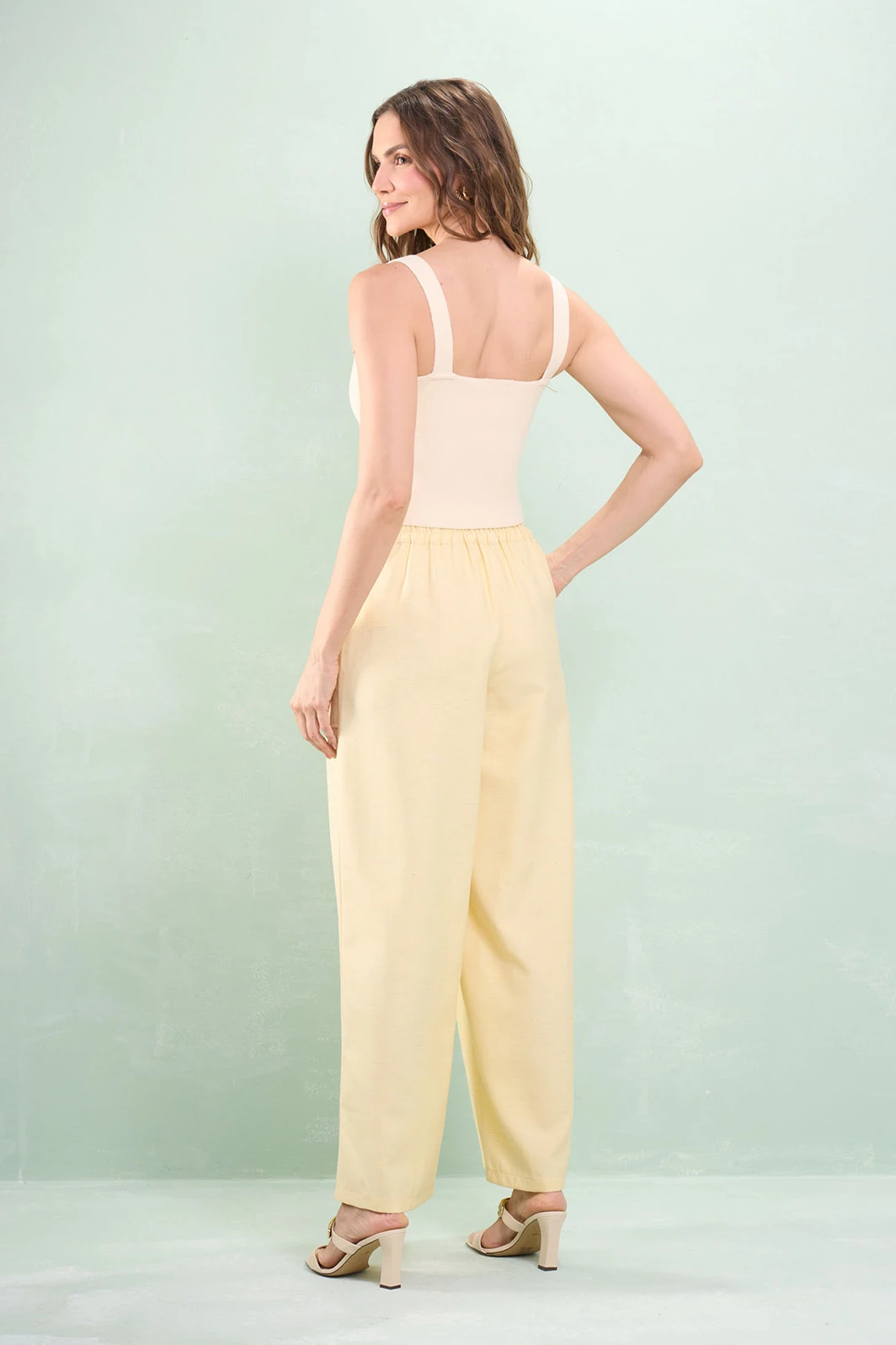 Calça Pantalona Bolso Martingale Linho Misto