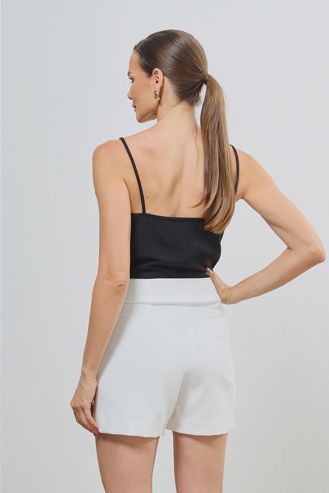 A peça que une a sofisticação da alfaiataria à praticidade do short-saia. Com design minimalista e corte impecável, este modelo oferece elegância e segurança para o dia a dia da mulher contemporânea. O toque de elastano garante liberdade de movimento sem perder a estrutura refinada.