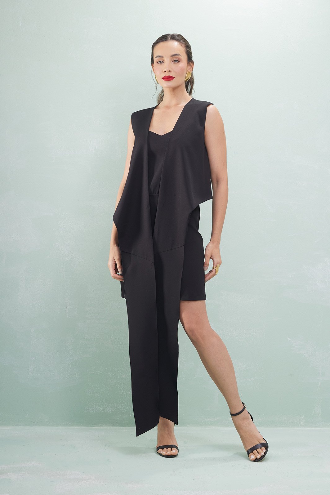 Vestido Curto Com Sobreposição Alfaiataria